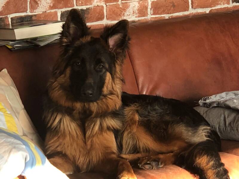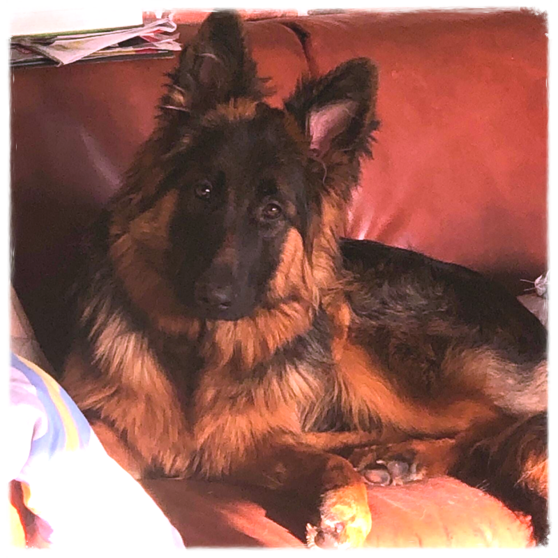 Unsere Meganachwuchshündin Alice (Spitzname Bertchen wegen ihrer schwarzen Maske in Anlehnung an Batman )