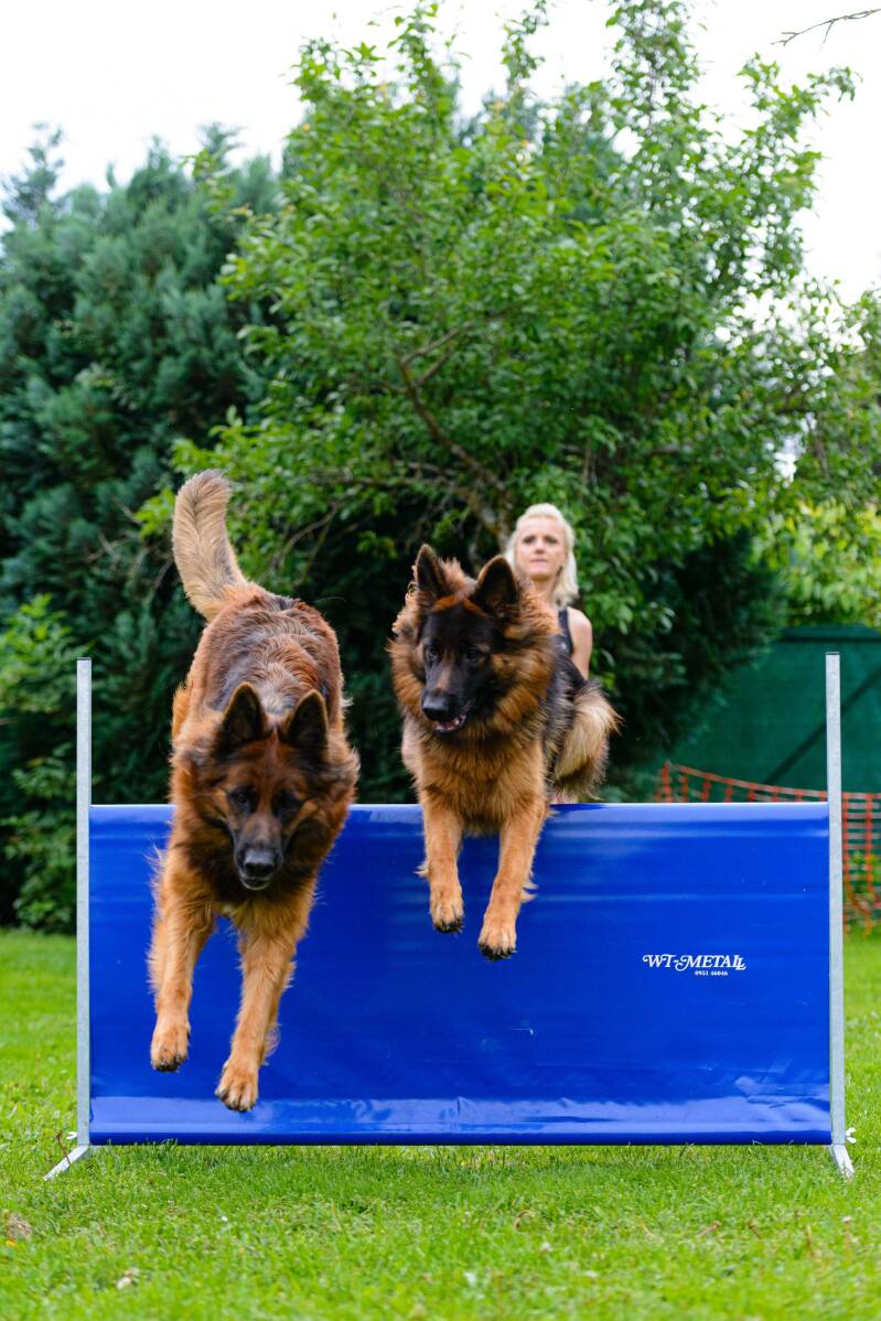 Anni und Alice an der Hürde ,-und keine Angst ,Hüftkranke Hunde würden das sicher nicht schaffen -(
